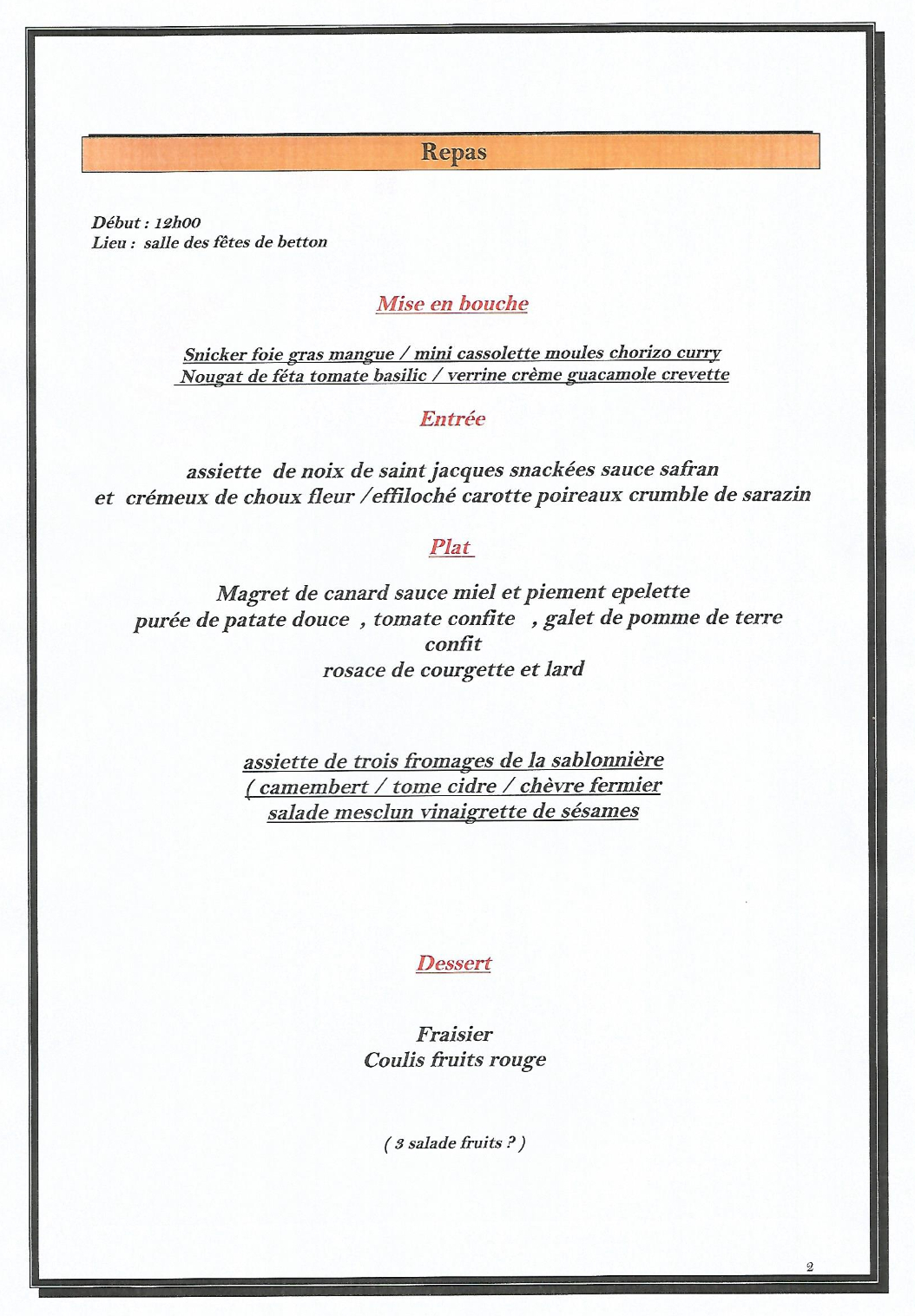 LE MENU ICI (Coût du repas : 25 €)